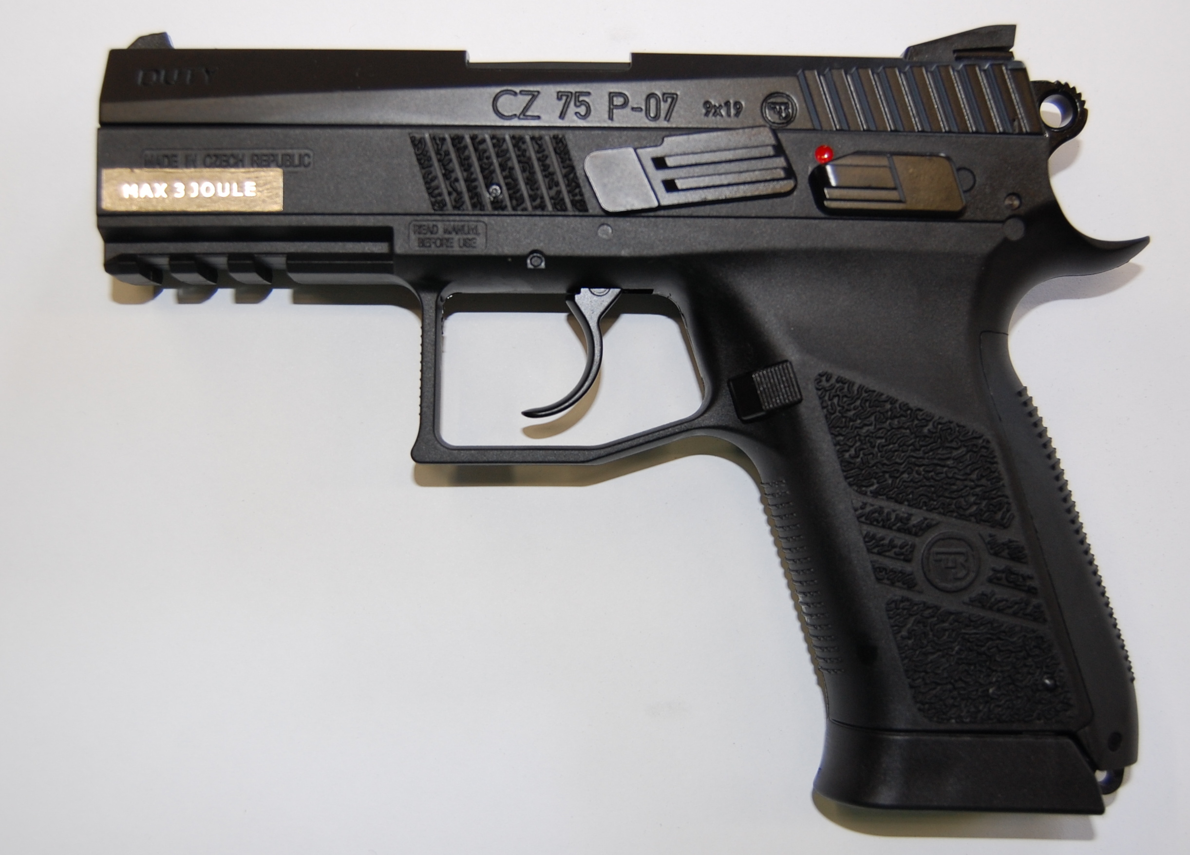 Velice věrná kopie realného modelu CZ 75 P-07 DUTY se všemi detaily, včetně funkční pojistky.