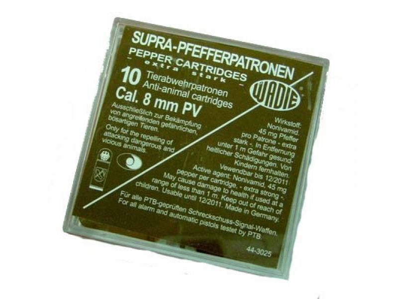 Plynové náboje PV-S 8mm pistole Supra Pepper360,00 Kč/ ks297,52 Kč bez DPH